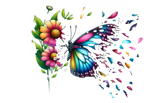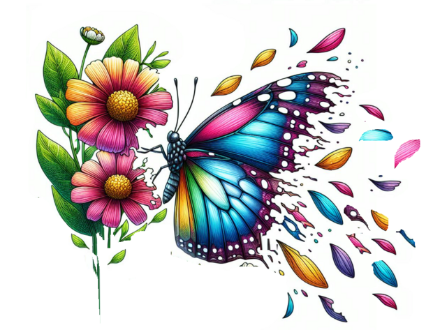 Chtěla jsem motýla s otrhanými křídly. Nakonec jsem křídla "otrhala" sama v aplikaci Malování a přidala černý pruh. Tak, aby to odpovídalo tomu, jak jsem si představovala ilustraci k článku o poruchách osobnosti a depresi.