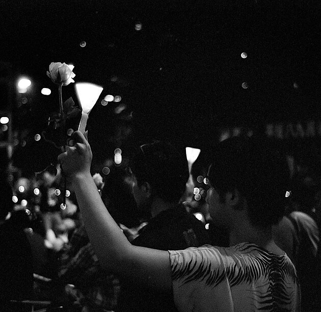Lidé jakoby si na cestu večerními ulicemi svítili svými telefony. Někteří i svíčkama. Na horizontu se mihotavá světýlka spojila v roj světlušek.