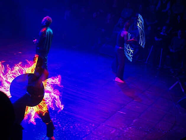 V průběhu večera je vidět mnoho světelných a pyrotechnických efektů v podání umělců Pyroterra. Spojení akrobacie, tance a ohně je bezesporu fantastickým doplňkem celého představení, což diváci hlasitě odměňují častým potleskem. Před začátkem vystoupení jsem měla jisté pochybnosti o působení Jiřího Zonygy v této inscenaci, navíc ještě v hlavní roli. Jedinou spojitost jsem s tímto jménem směřovala do okruhu zpěváků, kteří se do podvědomí lidí dostali díky televizním soutěžím, a nějak nechápala, jak se někdo z tohoto kruhu může dostat k hlavní roli v takovémto unikátním projektu. Po chvilce představení je jasno. Snad právě díky tomuto specifickému ztvárnění Goetheho hry, ztvárnil hlavní roli naprosto přirozeně a s nadhledem. Ještě před premiérou komentovala zakladatelka a umělecká šéfka divadla Pavla Forest, Zonygovu působnost v souboru, následujícími slovy: „Příchod Jiřího Zonygy vnímáme jako posílení našeho týmu sólistů. Jsme přesvědčeni, že nejen díky svým hlasovým dispozicím, ale i sílou své osobnosti bude skvělým Faustem.“ Po skončení představení nemohu než s jejími slovy souhlasit. Druhou hlavní rolí je bezesporu Mefistofeles, kterému svoji tvář i duši propůjčil herec Viktor Dyk, který je na rozdíl od nováčka Zonygy, stálým členem souboru RockOpera Praha. V tomto případě se předpoklad a očekávání skvělého hereckého výkonu, bezesporu potvrdil.