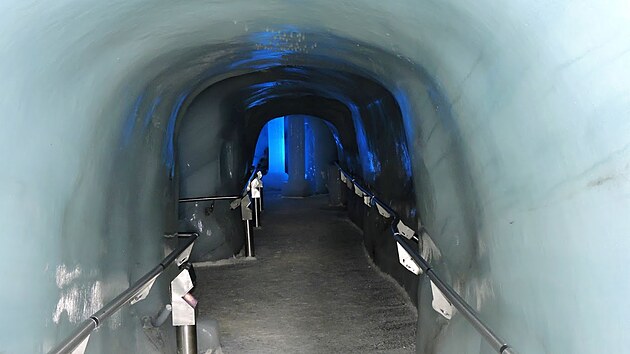 Přímo z můstku se vchází do ledového paláce vykutaného uvnitř Dachsteinského ledovce. Ledové chodby (klouzavé) spojují komůrky se sochami z křišťálově čistého ledu, nasvícenými barevným osvětlením. Některé exponáty jsou dokonce dotýkací, na ledový trůn pokrytý kožešinou se dá posadit.