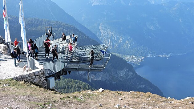 Nad srázem do Hallstattského údolí půl kilometru pod námi tu ční do prostoru pět lávek připomínajících nataženou dlaň s roztaženými prsty. Každý prst má poněkud jiný tvar - jeden je zakončen rámem, kde se dá pořídit foto jako obraz, další má částečně skleněnou podlahu, ze třetího za zábradlí na jeho konci pokračuje železné prkno jako skokanský můstek (cedule varuje před přelézáním zábradlí - věřím, že i takoví šílenci se najdou). Vyhlídka je pevná a stabilní, není to sice žádný speciální adrenalin, ale esteticky je to jedna z nejhezčích skalních vyhlídek, jaké jsem kdy navštívil. Opět další z míst, která prostě člověk MUSÍ vidět.