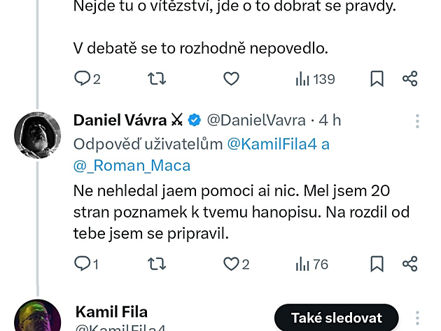 1h Duel o Kirka: Kamil Fila to natřel Danu Vávrovi, který obhajoval cenzuru a teokracii