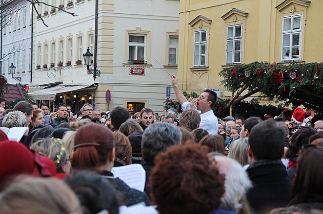 Tentokrát bylo obtížné pro opozdilé zpěváky se dostat na správné místo svého pěveckého hlasu, protože most i schodiště na Kampu byly doslova obsypány diváky. Atmosféra nadšení ze zpěvu byla přes zcela nevánoční teplotu úžasná! Nakonec se zpívalo za svitu zapálených prskavek Narodil se Kristus Pán. Rozloučili jsme se s přítomnými známými, popřáli si navzájem krásné svátky a odcházeli domů nabití společným krásným zážitkem z hudby.