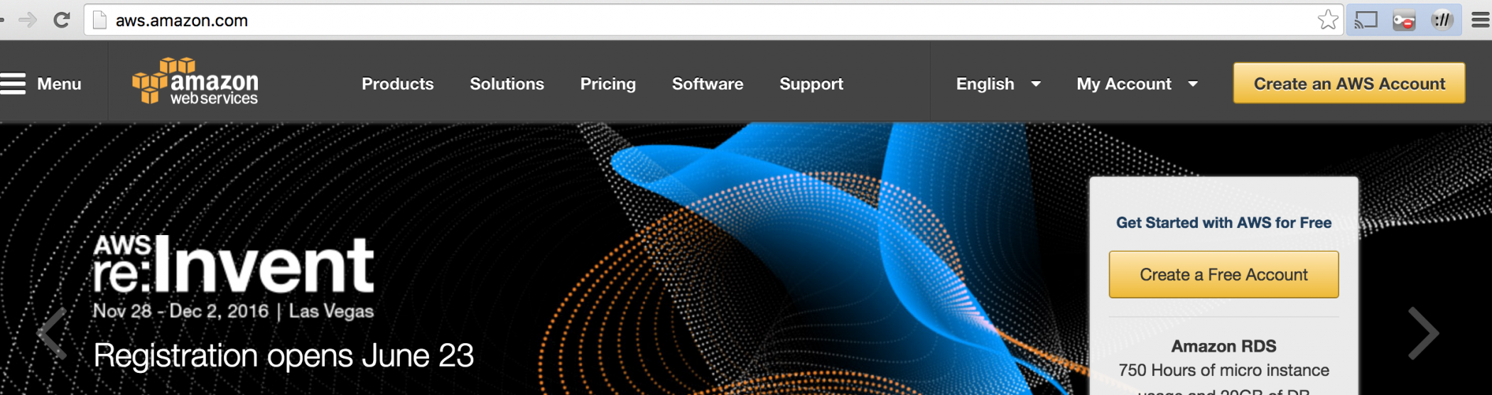 Vytvořte si účet na poskytovateli Virtualních serverů, např. aws.amazon.com