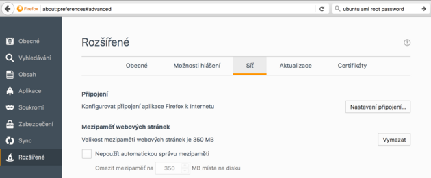 Přepněte se do nastavení - vyplňte do adresního řádku: about:preferences a klikněte vlevo na Rozšířené