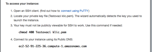 Opište si jméno instance (zde: ec2-52-91-225-36.compute-1.amazonaws.com):
