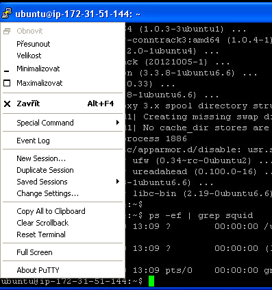 Nastavte port forwarding v programu putty. Klikněte na ikonku v levém horním rohu a vyberte Change settings.