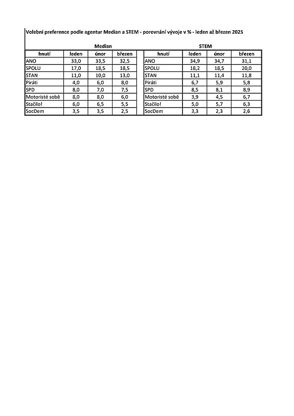 STAN podle průzkumů v posledních týdnech spíše roste (Stem to téměř nezaznamenává, ale Median ano). Spokojme se s konstatováním, že podle agentur je pozice STANu někde mezi 10 až 13 % volební podpory.
