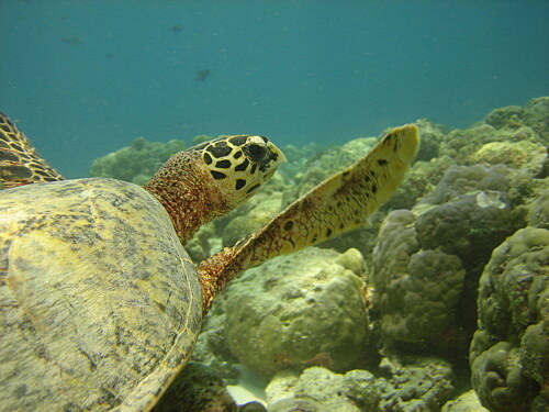 KaretaPavouk Žralok to je adrenalin. Manta je důstojnost. Klauni jsou pohyb. Ale je jeden mořský živočich, kterého fotím nejraději. Je to želva - kareta. Znamená pohodu a majestát. Neútočí, neskrývá se, neprchá. Majestátně proplouvá a někdy se i producíruje. Tyhle se mi (alespoň myslím) povedly. Akorát do té jedné se mi do kompozice připletl kamarád Banán, hlavní organizátor našich cest. Ale možná tam patří. On je taky důstojnost sama. Tady např. po vynoření povídal, co mně vole lezeš do záběru. A ještě k tomu potápění. Je to jediná činnost, při níž se zcela oprostíte od všech myšlenek. Jednak nejste v prostředí, které je člověku vlastní, jednak tady nejste na vrcholu potravního řetězce. A taky máte na starosti svého kolegu - buddyho, neboť potápění je o principu, že se o sebe starají vždy 2. A máte-li za buddyho vlastní ženu, je ta odpovědnost ještě vyšší. Protože kdo by se o mně staral, kdyby něco, že. Ale tady jsou ty slíbené želvičky.