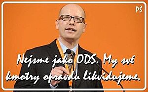 - Teď má strana sice relativně hodně čistejch gesichtů, ale já vůbec nevím, co od ODS očekávat. Adopce dětí homosexuály? Podporu Prague Pride? Přijetí Eura? Zákaz hracích automatů? Tohle ideový rozplizávání mě štve a neskromně si troufám tvrdit, že o voliče jako jsem já by ODS prostě stát měla...jenže mně se zdá, že se ta tvoje "čistá" ODS akorát snaží, abych ji už nikdá nevolil...