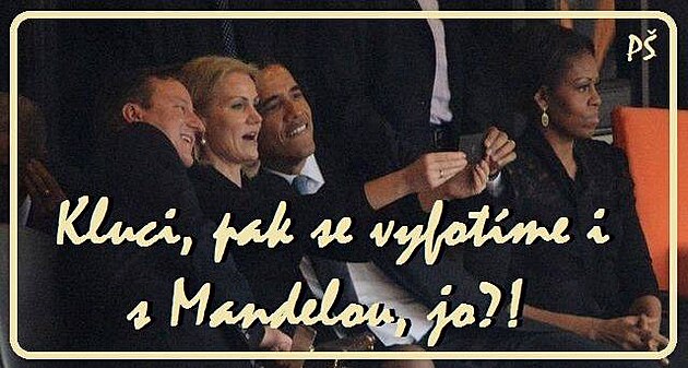 - Tak já myslím, že Jak Rusnok, tak Bimbo by tam zapadli... Asi by se tedy všichni najednou nevlezli do zorného úhlu iPhonu, ale prdel tam teda vole musela být veliká, při tom truchlení za Nelsona!