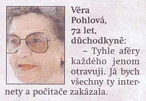 - „Svoboda je jednoduchá, laciná. Cenzura je nutná.“ Pravil uznávaný režisér Jiří Menzel. „Podporuju cenzuru, protože někteří lidé nejsou dostatečně dospělí,“ pravil v Událostech, komentářích. A prý cenzura není zlá, pomáhá kultivovat společnost.