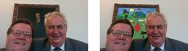 - Selfie pana Škromacha s panem prezidentem před obrazem TGM vyvolalo vlnu replik. Zde jedna z nic. Vlevo originál, vpravo pověstný Ringův obraz Zvířátka obdivují ****, zde s textem Zvířátka obdivují všechny tři