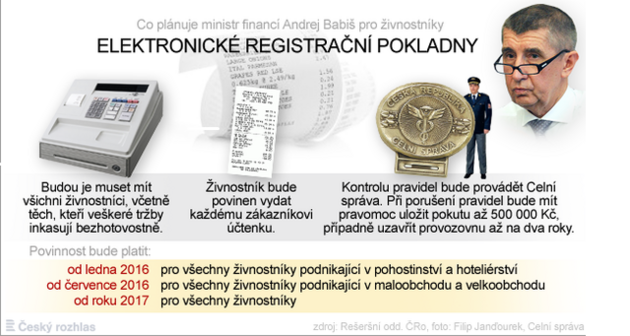 Je to snad úchylka evropanů, platit nemakačenkům za to, že si usouloží další krky, co nám hodí na starost? Jen na vysvětlenou. Gaza je velká asi jako Safari ve Dvoře Králové. Přitom dostala již minimálně 30x více než všechny státy v poválečné Evropě na obnovu rozbombardovaných měst. Že by si EU platila bombardování Izraele? Nevím jak vám, ale mně, jak říkal generál v Černých baronech, se chce zvracet. - Chorvatský vzor: Sledování tržeb on-line vedlo k jejich zvýšení i k vesnickým vzpourám. Ekonomiku země elektronizace ovšem nevyřeší, řekl chorvatský ministr financí. Také varoval před likvidací živnostníků kvůli devíti eurům, ke které v Chorvatsku dochází. „Jsme zasypáni údaji, se kterými jsme nepočítali – jde o údaje o nesprávném zařazení DPH, o pracovní době zaměstnanců, o nezákonném působení. "Fiskalizace neřeší ekonomické problémy země,“ uvedl Lopandič, který řekl, že díky novému systému je stát zasypán údaji, se kterými ani nepočítal a ještě je od roku 2013 nemá analyzované. Stále pracujeme s údaji z roku 2013 a rok 2014 ještě nemáme zpracován,“ řekl Lopandič doslova. Během fungování systému v Chorvatsku bylo od roku 2013 vykonáno 35 tisíc kontrol a vydáno 1000 rozhodnutí o dočasném zákazu činnosti za nevydání účtenky nebo za přebytek v pokladně, řekl Lopandič, který současně varoval, aby Česká republika nezaváděla podobně zničující systém. V Chorvatsku když obchod zavírá ve 21,00 hodin a ve 21,01 si přijde zákazník koupit flešku za devět euro, tak mu ji buď darujete nebo prodáte. Ve druhém případě, když nemáte štěstí, vám klepe na dveře ve 21,10 hodin kontrola a uzavře vám prodejnu, zaplatíte pokutu a svedete boj, aby byl obchod opět otevřen, řekl Lopandič. „Nemusím říkat, co to znamená pro majitele pizzerie, který živí celou rodinu,“ uvedl Lopandič, který popsal i vesnické vzpoury, ke kterým na začátku zavádění systému docházelo. Podle prezidenta Hospodářské komory mají firmy a živnostníci obavy hlavně z několika rizik. Tím prvním jsou samozřejmě náklady na nákup zařízení, které bude tržby elektronicky evidovat. Zároveň se bojí úrovně řešení a toho, že by zbytečně kvůli pomalé obsluze pokladny vznikaly fronty zákazníků. Zároveň mají strach, že systém bude nestabilní a může mít i úplné výpadky, které by jim krátkodobě znemožňovaly přijímat tržby.