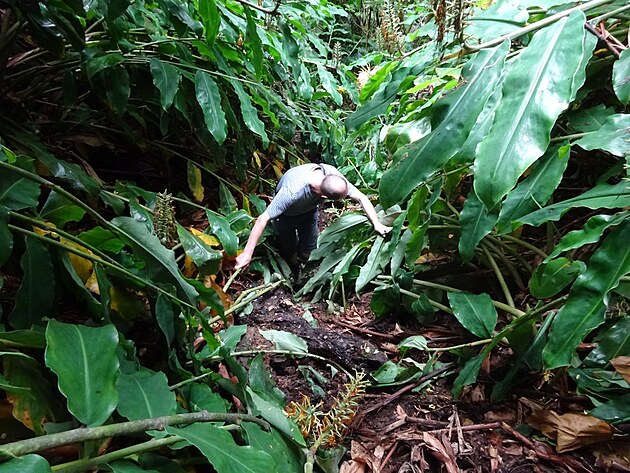 O kousek dál objevujeme pěšinku do „džungle“. Zkoušíme se po ní vydat, ale brzy to musíme vzdát. Po deštích je povrch kluzký až nebezpečný. Vracíme se tedy na oficiální cestu a vyhlížíme v mapě červeně značenou odbočku s názvem Grená - Pico do Ferro.