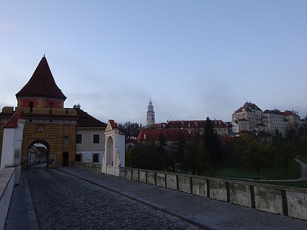 Ranní procházka městem i skrz zámek je dokonalá krumlovská idylka. V prázdných uličkách potkávám v neprobuzeném světle jitra pouze turisty z Asie, kteří se svými fotoaparáty číhají na východ slunce.