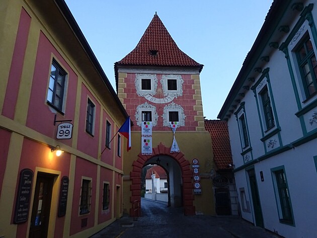 Zajímavý je u této stavby dvojí architektonický výraz. Z vnější strany opevnění působí brána s cimbuřím masivně, patrně se tím snažila zastrašit nepřítele. Zato vnitřní, červeně zbarvené průčelí s renesanční malířskou výzdobou a slunečními hodinami je přívětivé, jakoby chtělo říct: „Zůstaň návštěvníku, nespěchej pryč.“ Ale vypadá to, že moc lidí neposlechne, jelikož podle statistik převažují ve městě jednodenní turisté.