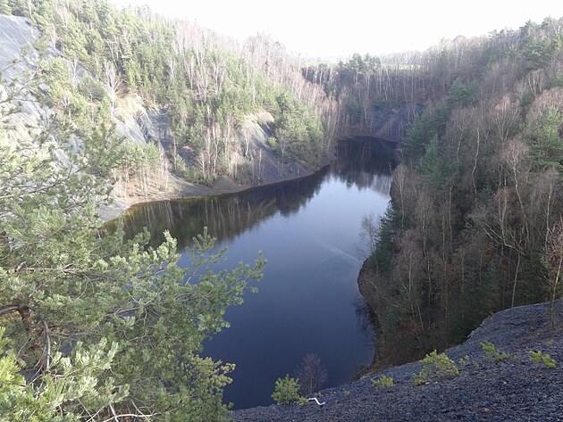 Zajímavé pohledy na toto jedinečné jezírko dělá především úroveň okolního terénu, který je asi 60 metrů nad hladinou. A tudíž nejenom voda upoutá návštěvníka. Velkého množství břidlice v okolí jezírka si určitě také nelze nevšimnout. Haldy, po kterých vede úzká pěšinka, občas s nádechem povyrostou, aby se posléze narovnaly nebo vzápětí skrčily. Někdo by sice mohl říct, že je to obyčejná díra s vodou tam někde dole, ale já myslím, že když se člověk pomalu projde kolem, tak si to tady musí zamilovat. Stačí nespěchat a poutník objeví krásu i tam, kde by ji nečekal.