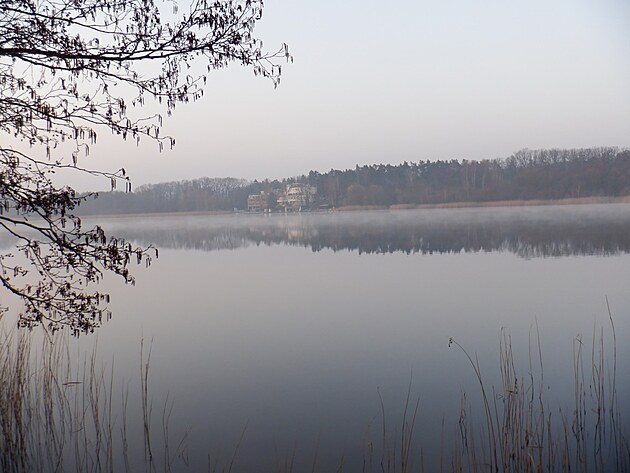 Noc pomalu předává vládu nad Velkým rybníkem procitajícímu se dni a paprsky slunce začínají nesměle oddělovat probuzenou, světlem zatopenou hladinu Máchova jezera, od přírody, která ještě sladce oddychuje. Jako ta krásná dáma v posteli. Já však potichu opouštím pokoj.