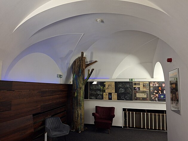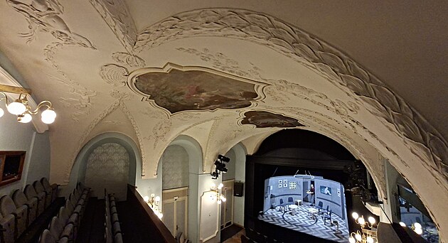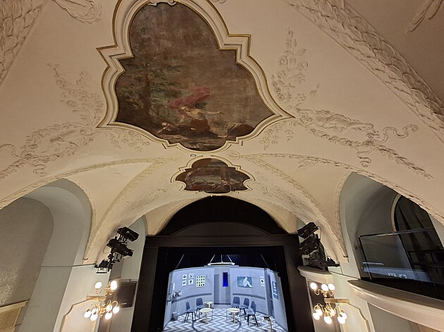 Své kouzlo má objekt nejenom zvenku, ale také vlastní divadelní sál, ve kterém byla tehdy jídelna – refektář. Vítají nás raně barokní klenby, původní štuková výzdoba i nástropní malby z let 1730–1740 s biblickými náměty (Poslední večeře, Sen Jakubův a Kristus v Emauzích). Poté, co dal roku 1781 císař Josef II. pokyn ke zrušení klášterů, usídlila se v budově státní manufaktura na výrobu krajek a některé další obchody. Roku 1938 přeměnil dnešní divadelní sál architekt Jaroslav Rössler na kavárnu. Tu krátce po druhé světové válce vystřídal Ústav dějin KSČ a v sedmdesátých letech Dům sovětské vědy a kultury.