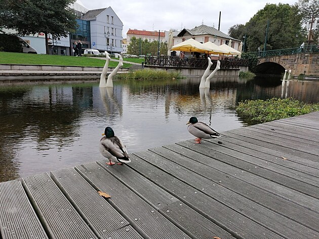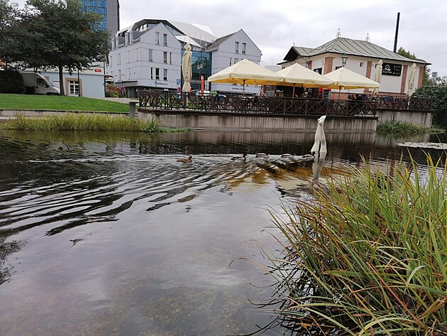 Vodní umělý prvek sem byl navrácen v rámci rozsáhlé rekonstrukce jako vzpomínka na bývalou Mlýnskou strouhu. Rozsáhlé mělké jezírko má překvapivě čistou a průzračnou vodu, ve které se prohánějí malinké stříbrnošedé rybičky. A na hladině plavou kačenky.