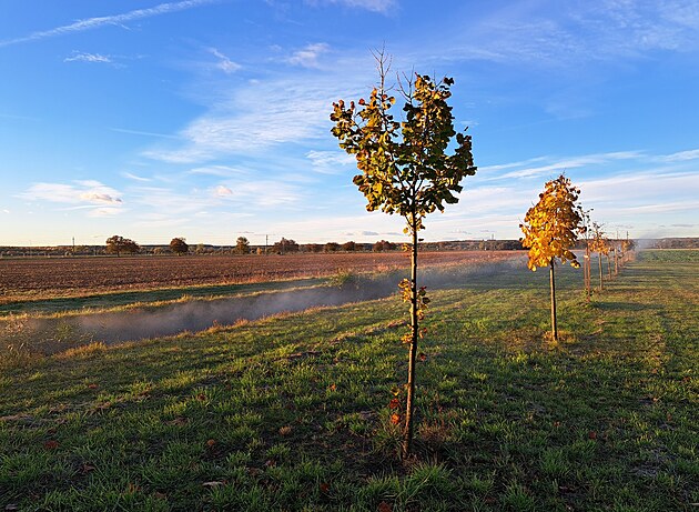 Usmívám se na něj, na hezké podzimní ráno, na probouzející přírodu za městem Bük.