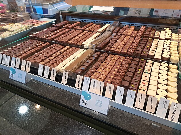 Ztrácíme se ve světě sladkostí a čokoládových specialit světové úrovně. Pohled na neusmívající se obličeje obsluhy nám však jasně říká, že se ještě nacházíme ve světě, ale v Maďarsku.