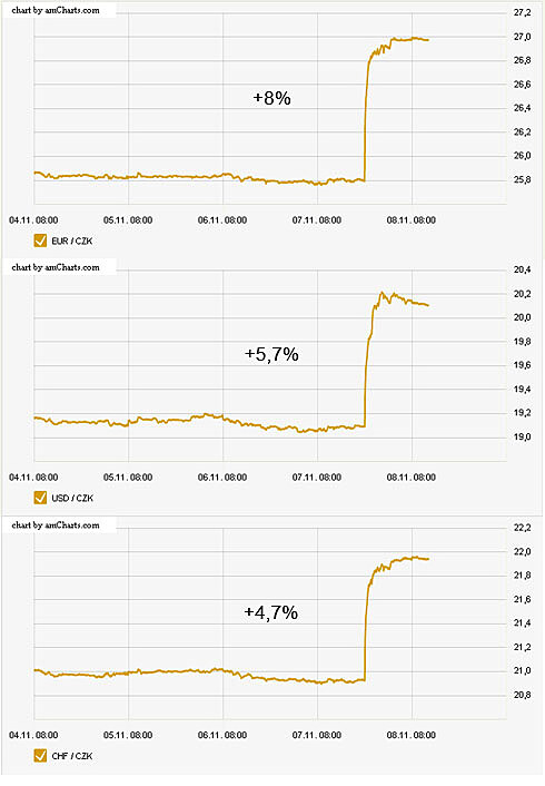 No a co mysíte? Ti, kdo investovali v cizích měnách a do fondů světových správců, z nichž někteří i na základě mých rad, zbohatli ze dne na den o cca 5%. Ale jedině s tím, že by teď hned své podíly převedli na koruny. Což je možné, ale málokdo to udělá. Investice do majetku je jistější, než investice do měny. Osobně by mě zajímalo, kdo na tomto kroku ČNB vydělal více, než těch 5%. Například spekulací na pád CZK proti jiným měnám na Forexu.