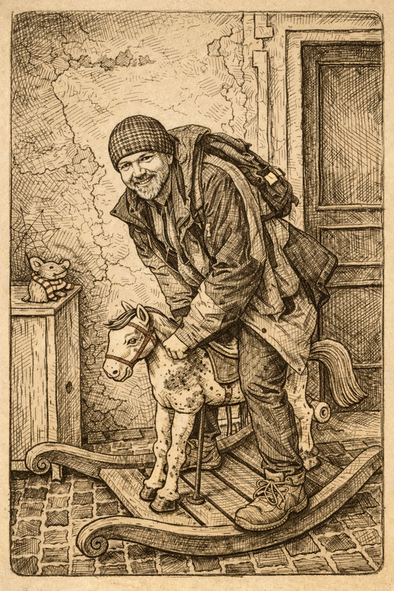 Já: Neboj, dala jsem ji upravit AI, takže tam nejsi úplně poznat. To jsi mě ostatně naučil ty. Jo a máš pravdu: je to metafora. Víš co... Ten tvůj život se taky pořád houpal nahoru a dolů. Prostě takový splašený (houpací) kůň...