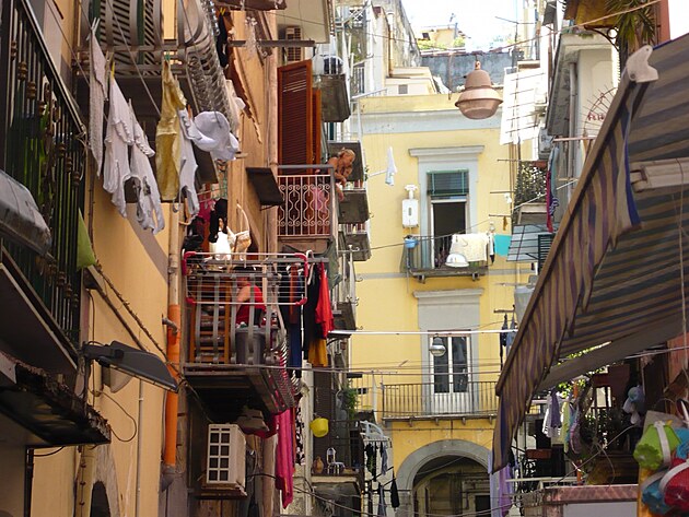 ...který chtěl pokračovat v rodinném řemesle, stavění lodí. Otec prý svému dědici původně pravil cosi jako: "Podívej se do Neapole a na moře." Slovo ´mare´ se pak časem zkomolilo na ´muori´ (zemři), nebo tak nějak, kdo ví. V dnešní Neapoli zřejmě není obtížné se stát obětí zločinu (průvodkyně nás varovala, že si máme sundat veškeré visící náušnice a řetízky a že máme chodit s kabelkou směrem ke zdi), čímž ono úsloví získává další význam.