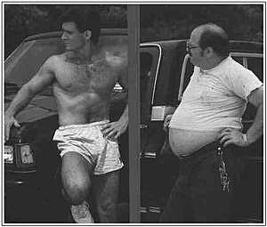 Jsem asi divná, ale mně osobně se mužské bříško líbí. Nesmí vypadat jako to, které má pán v brýlích na obrázku. Přiznám se, že to už je i na mě moc.