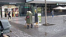 Kromě muzikantů pravidelně se objevujících před OC Nový Smíchov se nyní na stejném místě vyskytuje...