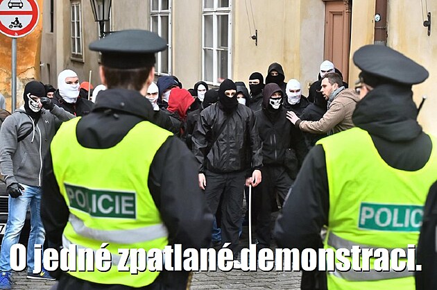 Tak při té demonstraci uniformovaná policie oddělovala demonstranty, které pro pořádek nazývejme „průvod ultralevicových anarchistů", od druhé skupiny, které pro pořádek nazývejme „koordinovanou skupinkou neonacistů“, což ale ve skutečnosti byli údajně neuniformovaní policisté.