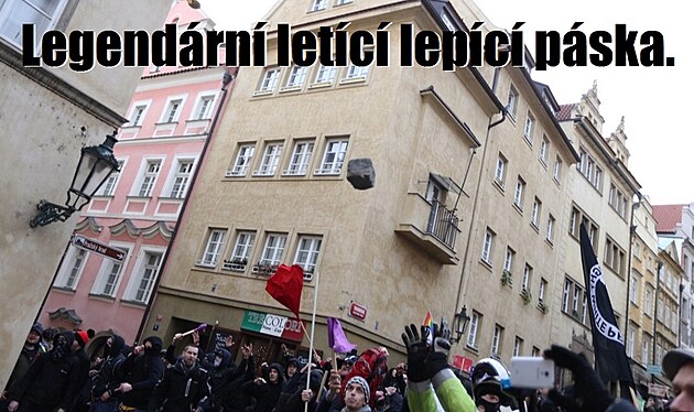Ve středu jsem si zašel s jednou kamarádkou do KFC do Kaprovy ulice v Praze a když jsme vycházeli ven, řinul se proti nám dav lidí s nějakými transparenty.