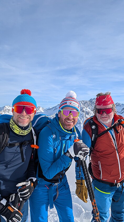 Jako obvykle vyrážíme ve čtvrtek po obědě. Místo spolujezdce zaujímá Marcel a dlouhá cesta za sněhem je lemovaná politikou, fotbalem a rodinnými drby. Měli jsme to jen tak tak… Večer už ve čtyřech, u vína, hodnotíme sněhovou situaci (bída!) a plánujeme zítřek. Mělo by to být někam pod Schöntalspitze 3 002 m n. m..