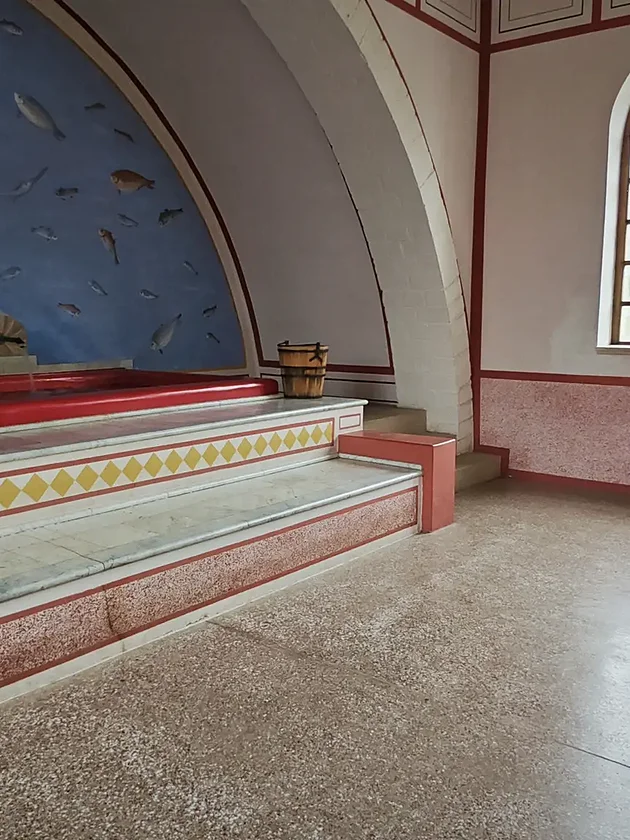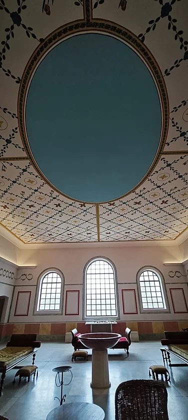 Vrcholem je caldarium s horkou lázní. Vzduch zde má přes 40 °C. „V původních lázních byla voda ohřívána kotli umístěnými přímo nad pecemi,“ vysvětluje. „Dnes používáme moderní ohřev, ale princip zůstává stejný.“