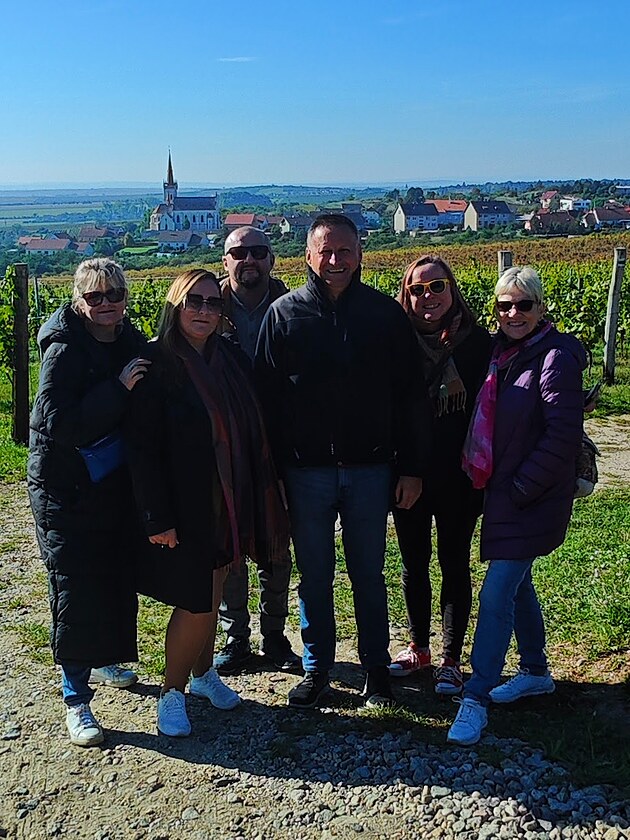 Sobotní ráno zasvěcujeme návštěvě vinic. Karel, náš průvodce a mentor, vede náš malý „vojenský“ oddíl mezi úrodnými svahy Kraví hory. S pečlivostí sobě vlastní nám vysvětluje nuance pěstování vinné révy a nezapomíná nás také náhle překvapit krátkým testem znalostí přímo v terénu. Ještě štěstí, že s námi je Markéta, která svého času pracovala ve vinotéce, a dokáže s Karlem držet krok v odborné vinné diskuzi.