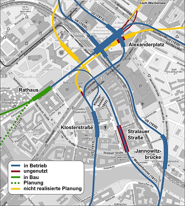 - odstřel stropu tunelu S-Bahn po kapitulaci berlínské posádky, kdy došlo k relativně rychlému zatopení tohoto tunelu (v řádech hodin) s následným přelivem vody do tunelu U-Bahn. Tunel S- Bahn byl zatopen v celé délce, tj. cca 6,5 km.