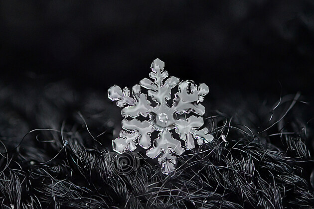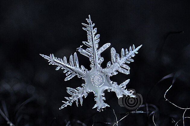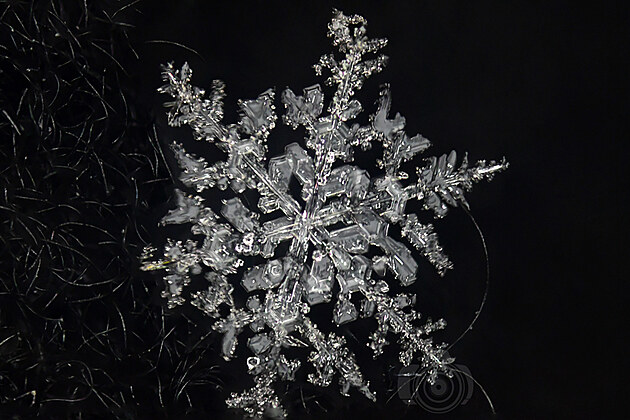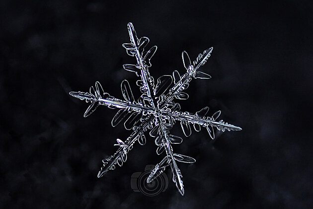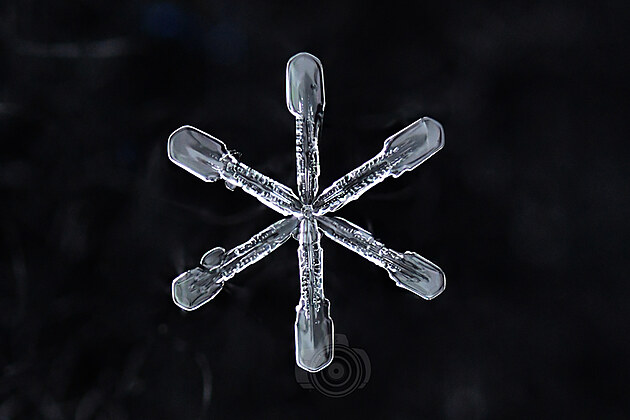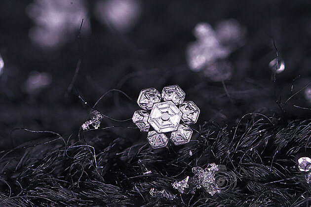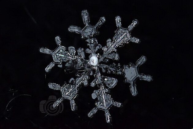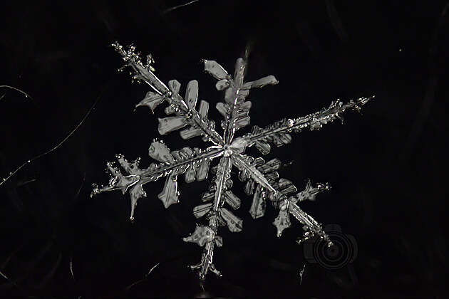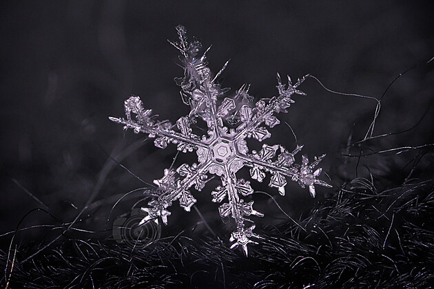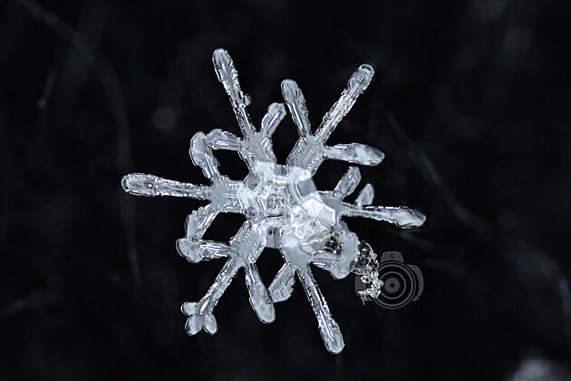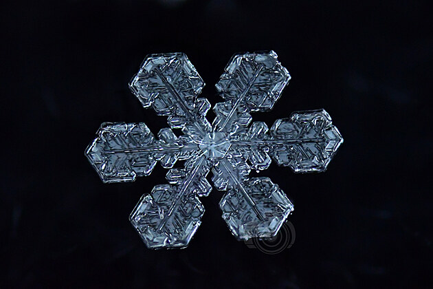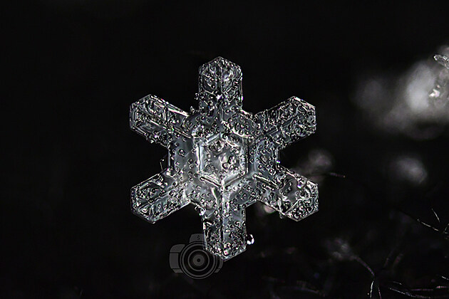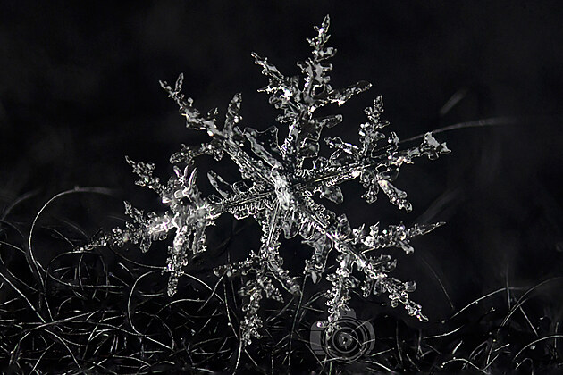 Tahle učebnicově utvářená vločka už taje, ale na půvabu jí to neubírá. Mohla by být předlohou pro Řád mrazivé hvězdy: