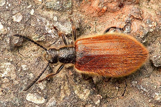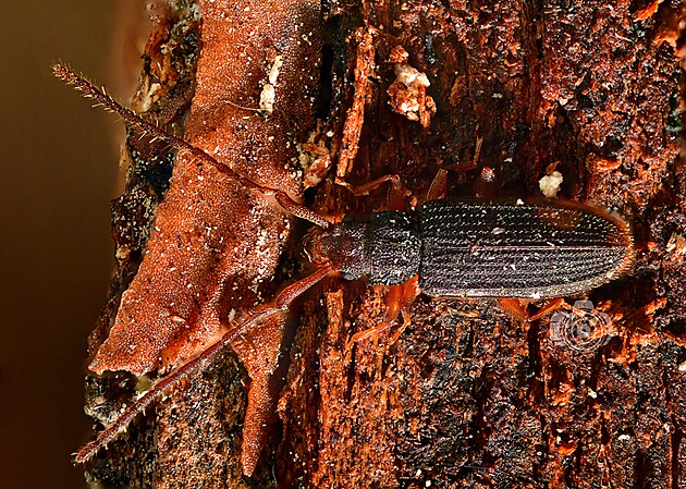 Lesák rovný je letos v čele pořadí nejběžnějších druhů. Pod kůrou jsme ho viděli snad všude, kam jsme se podívali: