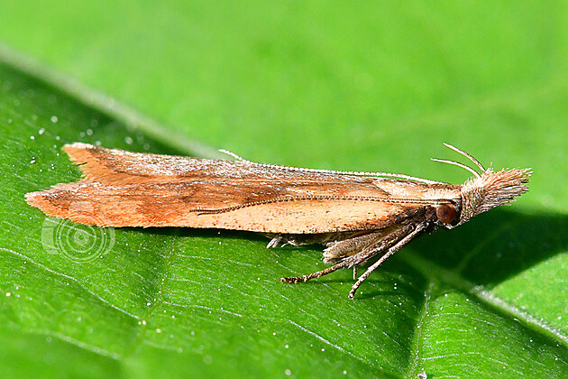 Makadlovka Dichomeris derasella působí v šikmém záběru značně vousatě. Při pohledu shora se zase zdá, že má dlouhý zobec. Dospělce potkáme v květnu a v červnu: