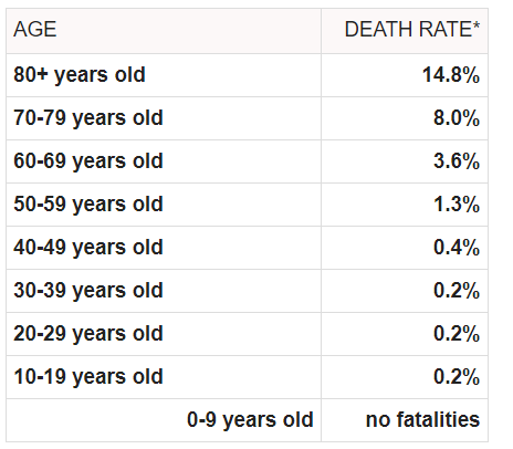 Úmrtnost na koronavirus dle věkových skupin