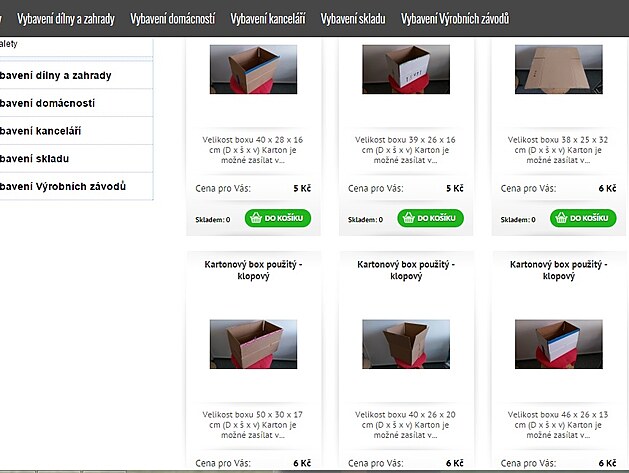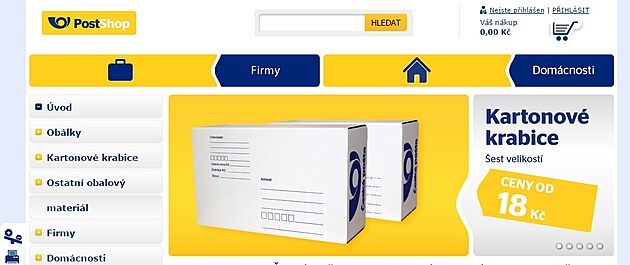 Při změření obsahu jsem zjistil, že potřebuji krabici minimálně odpovídající rozměrem listu papíru A4. Na stránkách e-shopu se objevila obrazovka indikující ceny již od 18,-Kč.