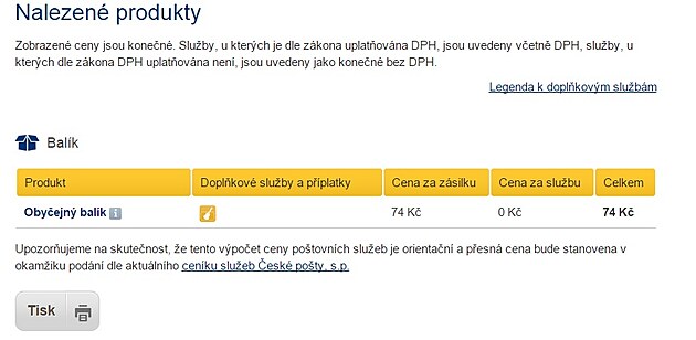 Nakonec mne zachránil opět web samotné pošty nabízející spočítání ceny po zadání základních údajů.
