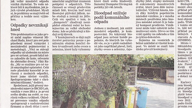 Vše začalo skutečností, že v Rokycanském Deníku vyšel 28. dubna 2016 článek s názvem "SNAHA ŽÍT BEZ ODPADU" Protože ještě článek není zařazen v online archivu, pořídil jsem jeho fotokopii, kterou přikládám níže.
