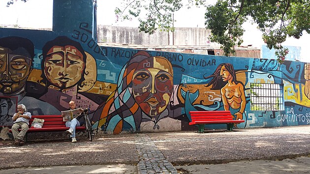 Další den společně s cestovatelem z Blatné vyrážíme do čtvrti La Boca. Jedná se o chudinskou čtvrť hlavního města. Vnímám oči místních lidí, kteří nás pozorují, po chvíli procházíme kolem pick-upu, který má místo kol jen dřevěné špalky. Zvláštní to pocit… Co je ale na této čtvrti úžasné jsou místní street graffiti. Jedná se o velké malby na zdech domů, které tvoří souvislý kreslený příběh. Nejsou to graffiti, které známe z České republiky, ale svou dokonalou grafickou podobou spíše odpovídají Francii či Jamajce. Jsou to úžasná díla, místní si barví domy, aby ladily do podob s graffiti a celá čtvrť je nádherně malovaná. O kousek dál pozorujeme, jak lidé na ulicích tančí tango. Latinská hudba hraje ze starého kazeťáku, ale na atmosféře to nic nemění. Lidé zážitek prožívají, tancují, smějí a baví se. Atmosféra je úžasná, chvíli stojíme a přihlížíme. Místní nás lákají tancovat, ale z předchozí zkušenosti ze sousední Brazílie vím, že tancovat latinské tance je nad míru mých dovedností.
