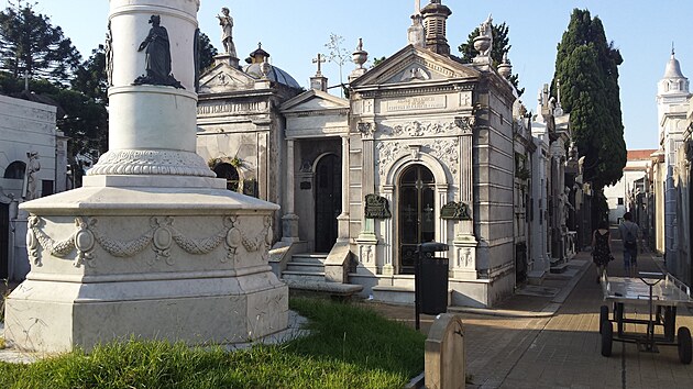 Další den míříme na místní hřbitov, jakožto sociálního pracovníka mě zajímají osudy lidí, historie, život i smrt. Hřbitov je vystaven ve tvaru zmenšeniny hlavního města. Místo hrobů uložených v zemi je hřbitov složen z velkých zděných hrobek připomínající ulice a domy. Už chápu proč místní říkají hřbitovu zmenšenina města. Procházíme kolem hrobek, překvapuje nás, že hrobky mají okénka a dveře s průhledy. Jdou vidět staré zaprášené rakve, zvláštní to pocit. Ale proč zrovna hřbitov? Rozhodli jsme se právě proto, že na tomto místě je pohřbena Eva Peron – manželka argentinského prezedenta. Určitě znáte muzikál i film Evita. Ano, to je ona! K její hrobce nosí denně lidé červené karafiáty, které měla tak ráda. Z této hrobky se stalo doslova poutní místo.