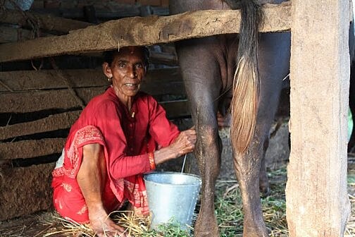Po návratu nás Ravi provádí po hospodářství. Mají kůzlata i telátka, která se pasou poblíž krav. Krávy jsou přivázané u kůlů, ale nemají provazy kolem krku, nýbrž protažené nozdrami - a to se mi nelíbí. Ptám se Raviho, proč jsou uvázané za nozdry a on mi odpoví, že jsou díky tomu lépe ovladatelné. Prý se jedná o velmi bázlivé plemeno, které se nechce vzdálit od hospodářství. Když je potřeba dostat krávy na vzdálenější pastviny, je toto opatření nezbytné. Opodál pozorujeme dva místní muže, jak učí mladé býky orat pole. V tomto kraji se lidé býků zbavují, protože jim nepřinášejí užitek jako krávy. Pan Lohani býky skupuje a na svých pozemcích je učí orat. Pak je může pronajmout.