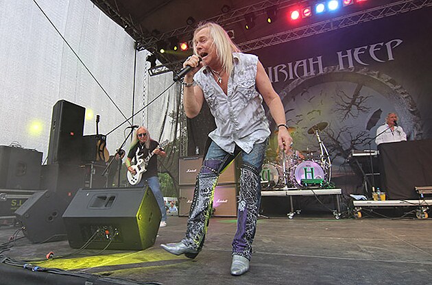 Po krátké přestávce, kdy se přestavovalo pódium a kdy šli návštěvnici doplnit v té výhni (na slunci bylo minimálně padesát stupňů) tekutiny, se chystala nastoupit legenda z Britských ostrovů, skupina Uriah Heep. Taky Uriáši si v posledních létech prošli většími personálními změnami, za což mohlo úmrtí baskytaristy Trevora Boldera před 2 roky a taky určité zdravotní problémy bubeníka Lee Kerlslakea. Ale jejích nástupci jsou skvělí muzikanti. Zvláště bubeník Russell Gilbrook (51 let) předvedl mladším kolegům, jak se bubnuje s duší. Jediným původním a zakládajícím členem Uriah Heep je kytarista Mick Box, který čtyři dny před olomouckým koncertem oslavil již své osmašedesáté narozeniny…kdo by to do něj řekl, „teenagera“ jednoho.