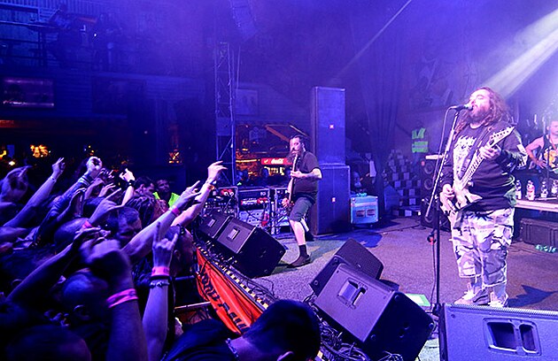 jenž jej doprovází již 13 let v dalším souboru Soulfly. Za mikrofonem nesměl chybět nikdo jiný než Max Cavalera, který na svou čtyřstrunnou ESP kytaru (horní h a e struny Max na kytaře nemá) drtil jeden riff za druhým. Úvod koncertu obstarala novinka Babylonian Pandemonium z aktualního alba Pandemonium. Následovala skladba Sanctuary z prvotiny Inflikted (2008). A pod podiem začalo opravdové peklo. Někteří fanoušci svlečeni do půl pasu řádili ve víru hudby, protože teplota v sále rapidně stoupala na hodnoty, které jsou peklu hodně blízko. Mosh pit, který následně pod pódiem vypukl, strhl skoro pětinu sálu do thrashového běsnění.